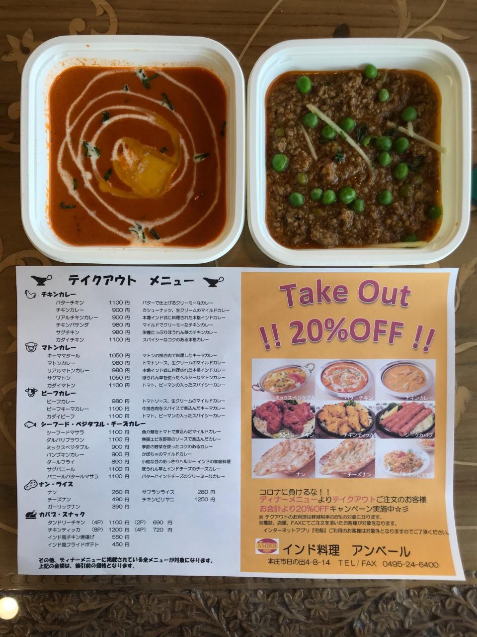 ただいま、ディナーメニューからのテイクアウトご注文で20%OFFキャンペーン実施中です✨全営業時間受付中ですので、ぜひ『おうちごはん』のお供にアンベールのカレーを加えてみませんか??🏠🍛💖