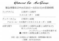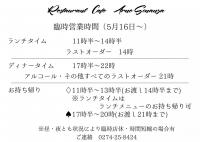 こんにちは!アーネソナンサです♪緊急事態宣言の解除、また群馬県からの自粛要請緩和に基づき、本日より段階的にはなりますが営業時間をのばしていきます!!まず最初の段階として添付した通り、ディナータイムの営業...