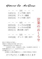 最新の営業のお知らせです