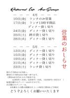 最新の営業のお知らせです