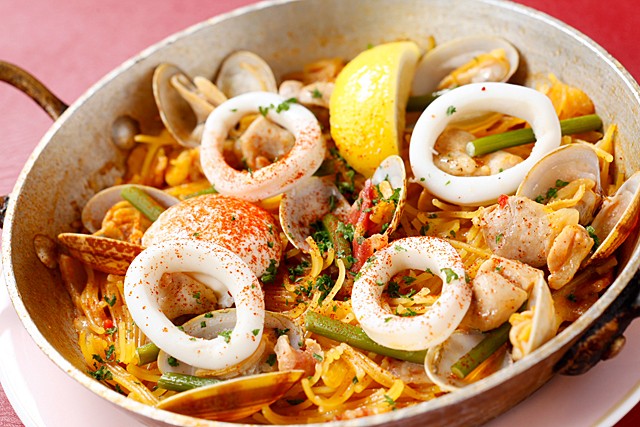 イカ墨のパエリア   フィデワ(パスタのパエリア)   バスク式 あさりのパエリヤ