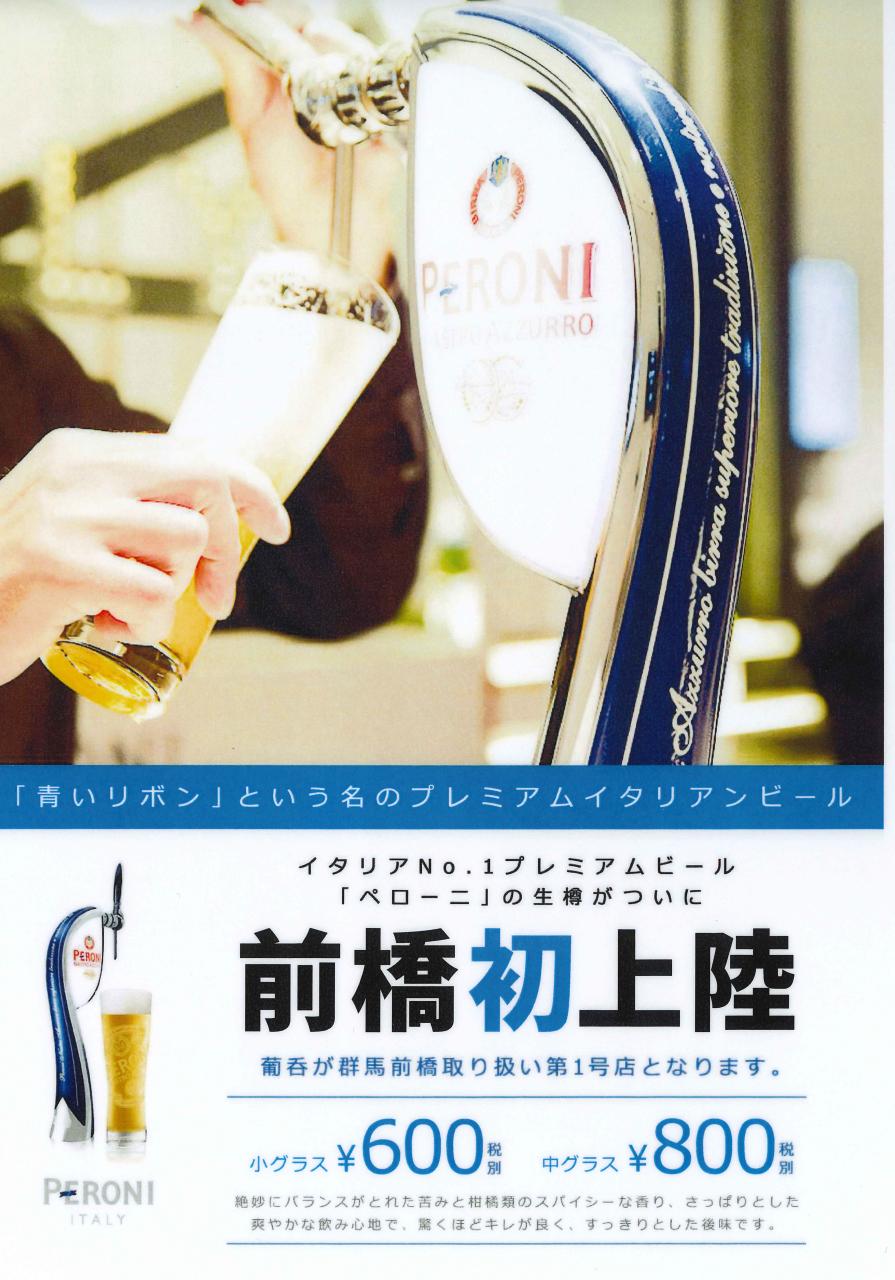 イタリアNo.1プレミアムビール「ペローニ」生樽 前橋初上陸!!