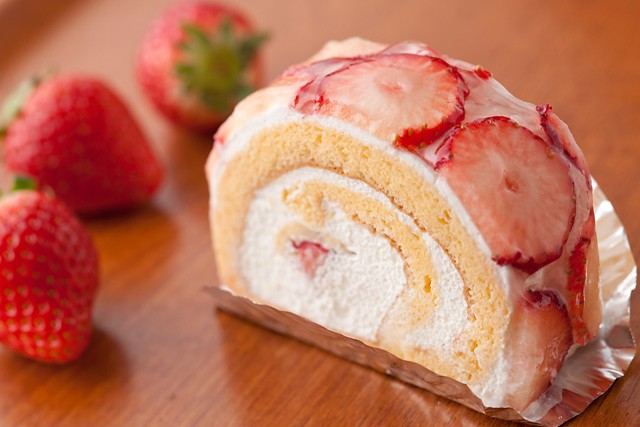 ふわふわのビスキュイ生地で生クリーム・苺を巻きあげた組み合わせは◎! |