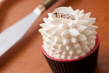 アールグレイの紅茶のムースのまわりに、敷島公園の松ぼっくりをイメージしたトゲトゲの生クリームを絞りました。 |