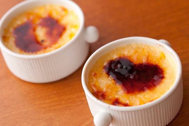バニラビーンズ入りの生クリームプディング、仕上げに表面をキャラメリーゼ。 |