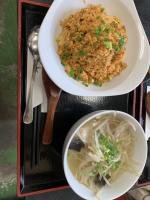 本日の日替わりはキムチ炒飯と半もやしラーメンです。