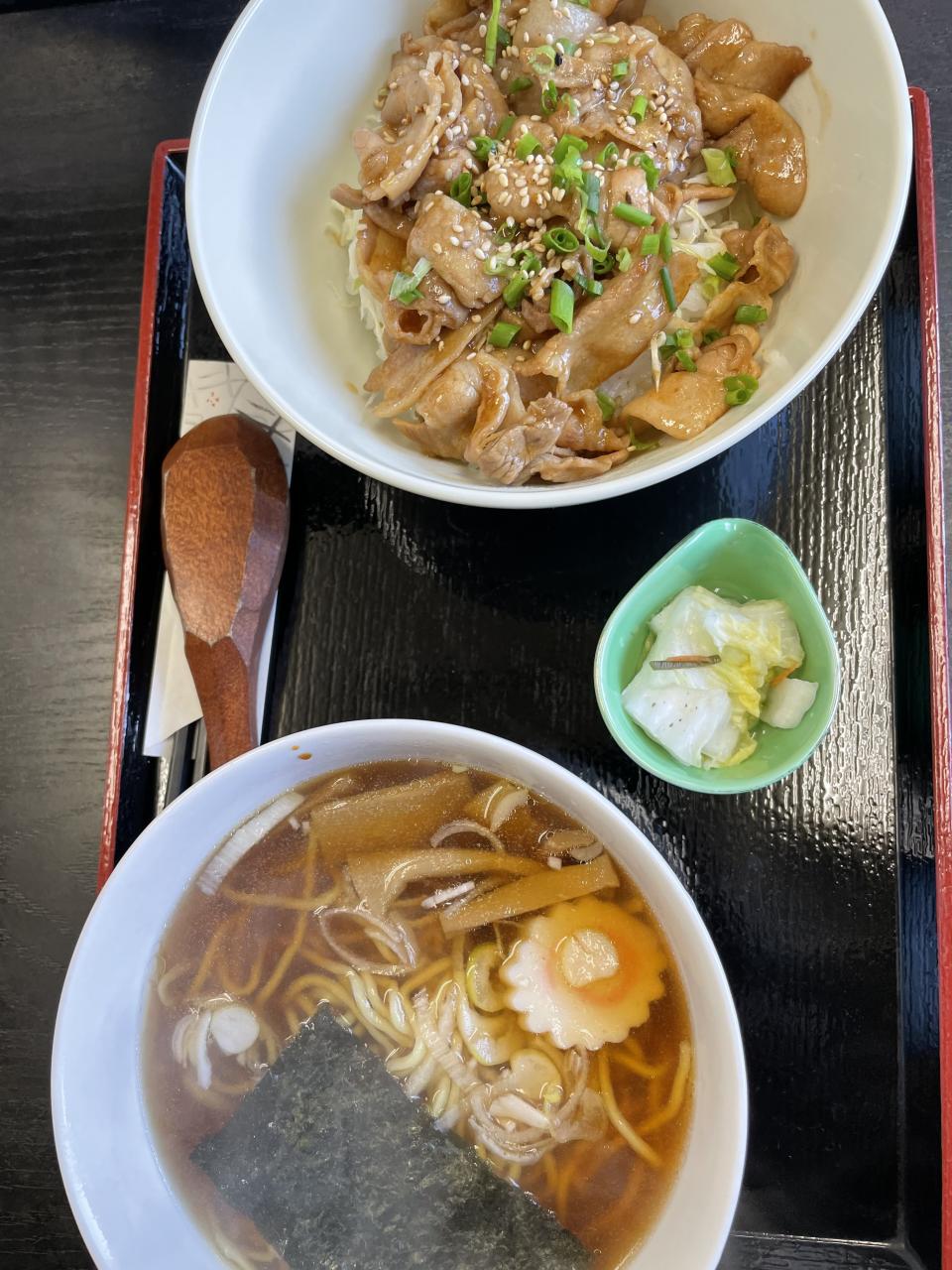 本日の日替わりは豚カルビ焼肉丼と半ラーメンです。
