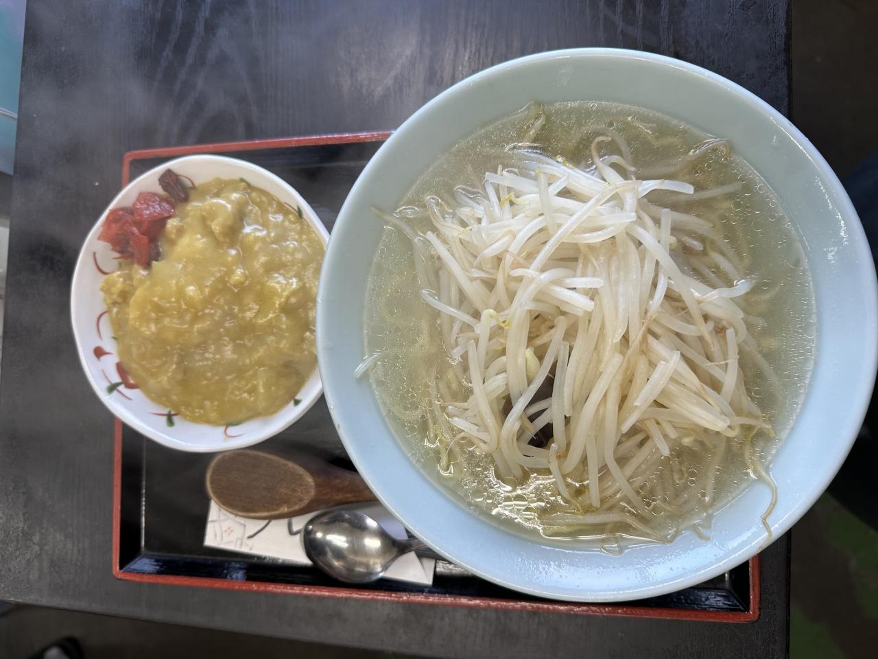 本日の日替わりはもやしラーメンとミニカレーライスです。