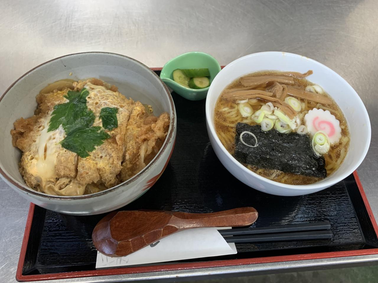 本日の日替わりはカツ丼と半ラーメンです。