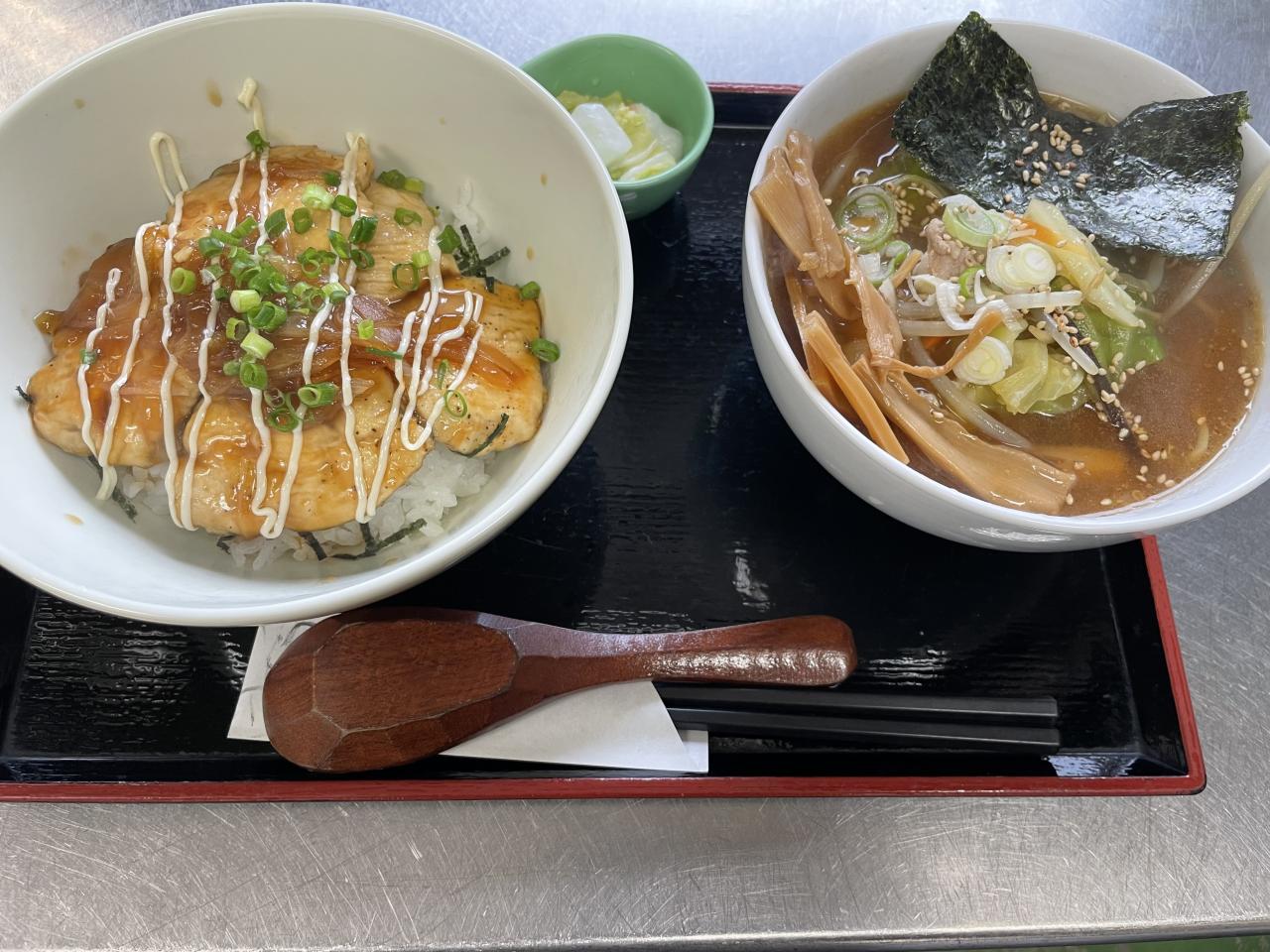 本日の日替わりは照り焼きチキン丼と半味噌ラーメンです。
