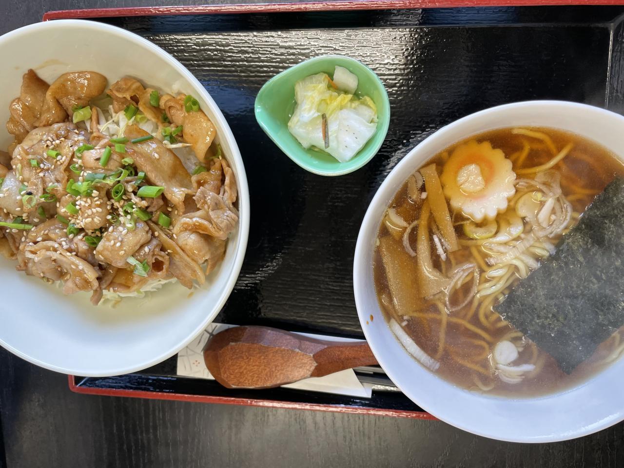 本日の日替わりは豚カルビ焼肉丼と半ラーメンです。