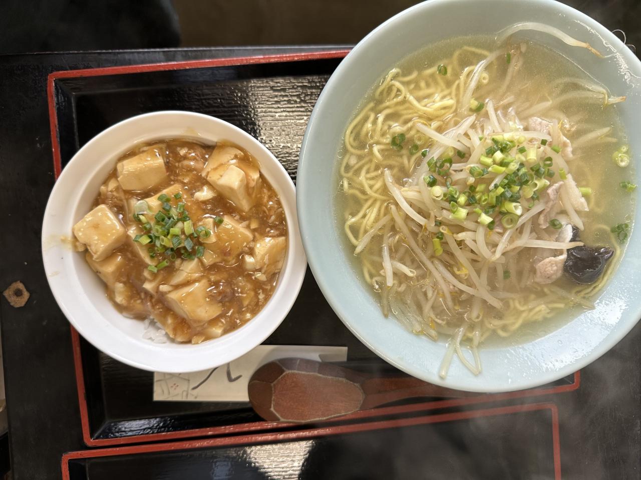本日の日替わりはもやしラーメンとミニ麻婆豆腐丼です。