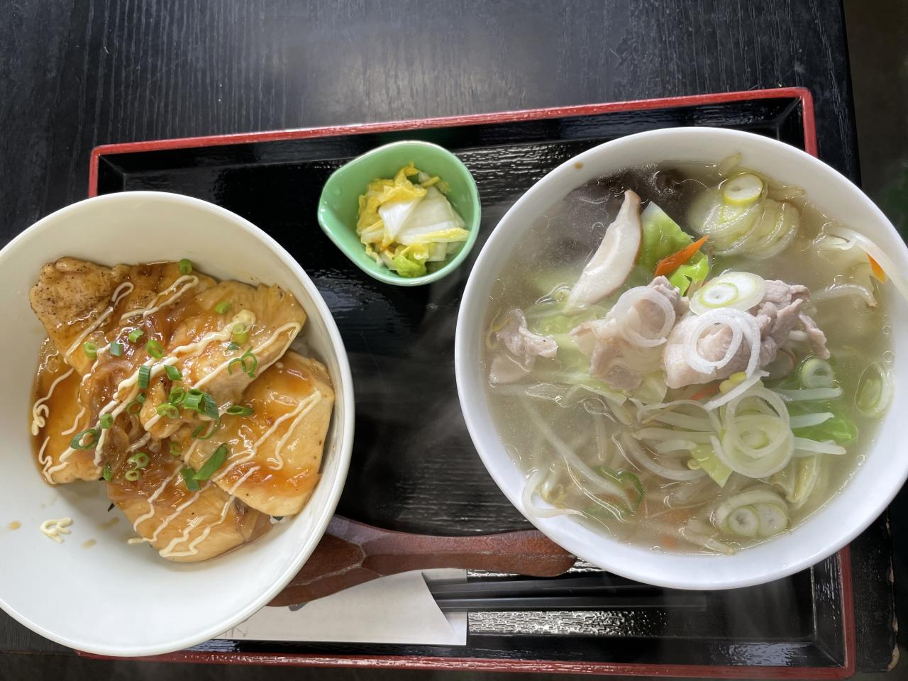 本日の日替わりは照り焼きチキン丼と半タンメンです。