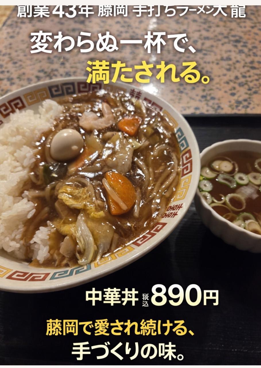 大龍といえば「手打ち麺」ですが、実はこの**「中華丼(税込890円)」**も隠れた超人気メニューなんです。