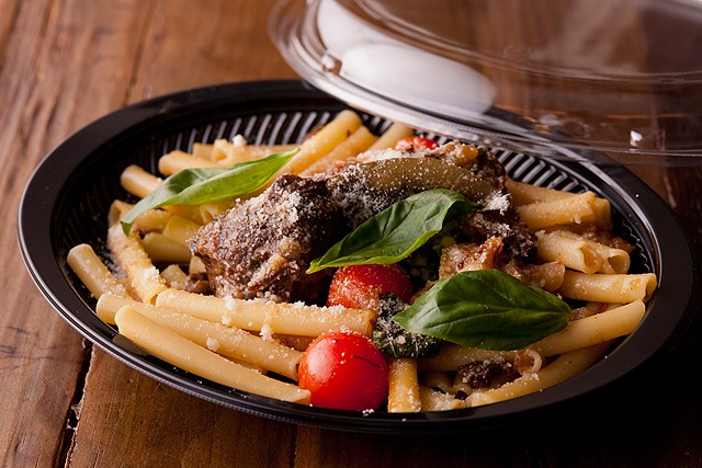 | 国産牛ホホ塊肉と玉ねぎ、白ワインとトマトののナポリ風煮込みソース | 港町ナポリらしい魚介類たっぷり軽いトマトソース | |||||