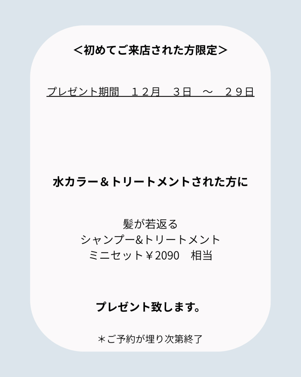 水カラー&トリートメントをされた新規の方にプレゼント🎁