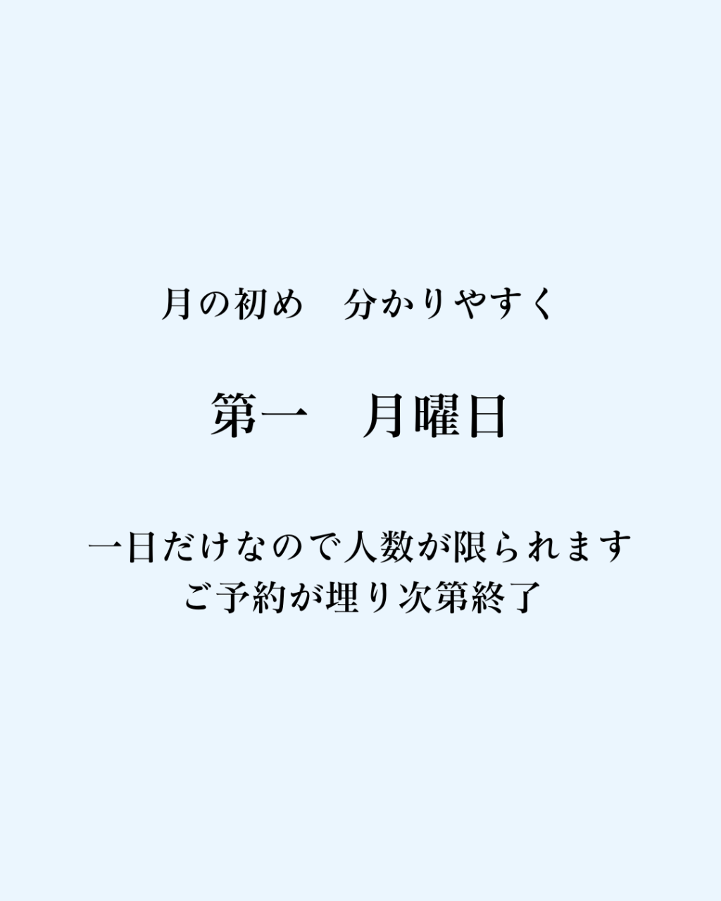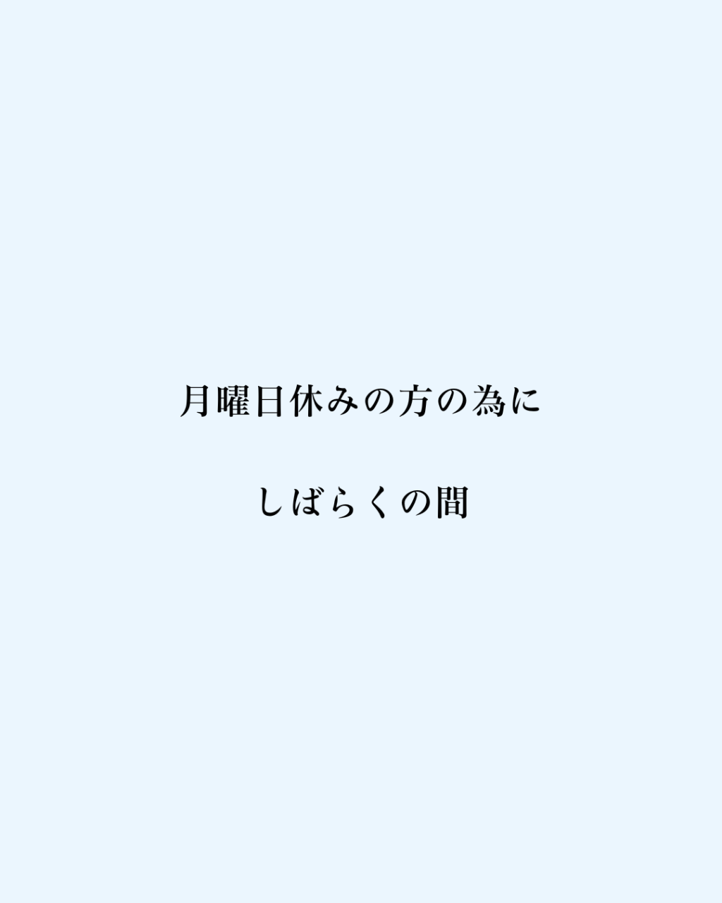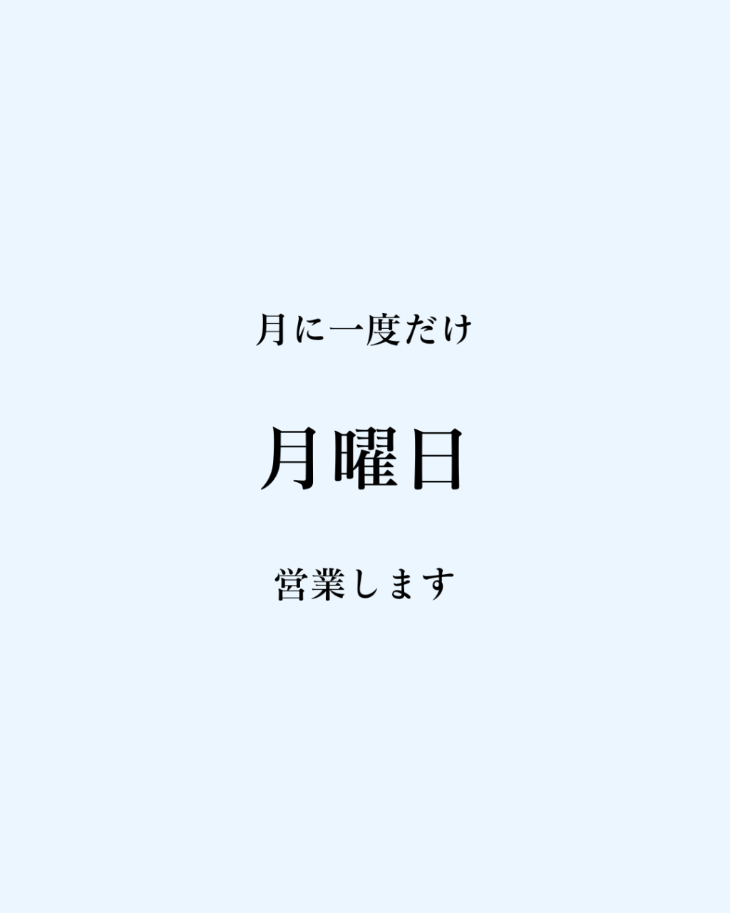 月曜日休みの方の為に暫くの間、月に一度だけ月曜日を営業致します。