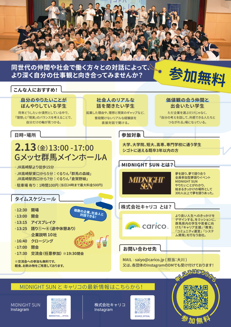 お問い合わせ Mail:gunma-career@carico.jp