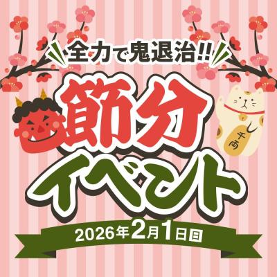 節分とはどのような風習なのか?など日本の文化を学びながら、楽しいイベントに参加しよう♪ 【全力鬼退治!豆まき!】 日時:2月1日(日)15:00~15:30 会場:屋外広場、ステージ 料金:参加無料で豆配布あり ※但し、道の駅で購入した500円以上の購入レシート(2026年1月~2月1日)を提示で豆をお一人様1個配布 参加方法:予約不要 14:30より豆配布 【鬼のお面ワークショップ】 日時:2月1日(日)12:30~14:30 会場:フードコート2階 会議室 料金:300円/人 参加方法:先着60名(ホームページから事前予約) 【恵方巻づくり教室】 日時:2月1日(日)10:00~12:00 会場:フードコート2階 調理室 料金:1組2名 4000円 参加方法:先着18組(ホームページから事前予約) 【鬼と記念撮影with ことろん】 日時:2月1日(日)15:10~15:30 会場:屋外広場、ステージ 料金:無料 参加方法:予約不要 ※豆まきに参加いただいた皆様を優先とします 【まえばし赤城の湯~鬼退治ぽかぽか湯~】 日時:1月30日(金)~2月1日(日) 料金:大人700円、子供350円 ■アクセス 【車】関越道渋川伊香保ICより約10分/駒寄スマートICより約10分 【バス】JR前橋駅より渋川駅行きバスで約25分「法華沢バス停」で降車後徒歩10分 ■駐車場 あり(約500台/無料) >>>>>詳しくはこちら<<<<< 道の駅まえばし赤城 https://maebashi-akagi.jp/amuse/post-17169 ※掲載後、日程や時間等が変更になっている場合がございます。お出かけ前には公式サイト等をご確認ください。 |