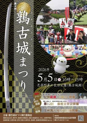 邑楽町鶉新田にある中世・戦国時代の城跡で、町指定史跡になっている鶉古城を中心とした多々良沼公園で行われる「鶉古城まつり」 徳川家刀工康継が刀を作った地でもあるこの鶉古城で、今年も様々なイベントが開催されますので、ぜひご来場ください! ■内容 ・弁財天大祭 ・藤棚呈茶会と和太鼓・箏の演奏 ・オーランドさんフワフワ遊具 ・武将兜・子ども向け甲冑着付け体験&記念撮影 ・ステージパフォーマンス ・飲食販売・子ども向け模擬店 ・おうらてくてくアプリ当日限定コース ・スタンプラリー ・公開鍛錬開催 ・鶉古城まつり刀剣特別展示 ■アクセス 東北道館林ICから約20分/佐野藤岡ICから約20分 ■駐車場 臨時駐車場あり (PDF資料の駐車場案内をご覧ください) >>>>>詳しくはこちら<<<<< 邑楽町ホームページ https://www.town.ora.gunma.jp/s051/uzurakojo_3.html ※掲載後、日程や時間等が変更になっている場合がございます。 お出かけ前にはオフィシャルサイト等をご確認ください。 |