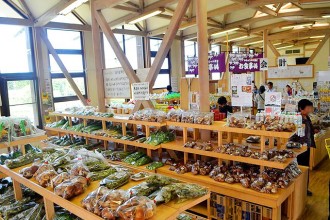 四季の新鮮野菜、地元の特産物などが豊富に揃う妙義の直売所で食材を吟味。