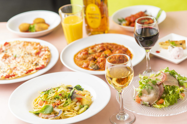 | ◆前菜サラダ ◆赤城牛メンチコロッケ ◆ショートパスタ ◆Pizza ◆パスタ ◆メイン お肉料理 ◆ジェラート ★2時間飲放題付き |