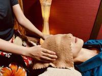 タイハーブボウルの略で、塩やお米に加えてタイのハーブを混ぜて作ったボール状のものを50度ほどに温めて全身を温めながらハーブの効果で筋肉や交感神経をじんわりと癒していきます。