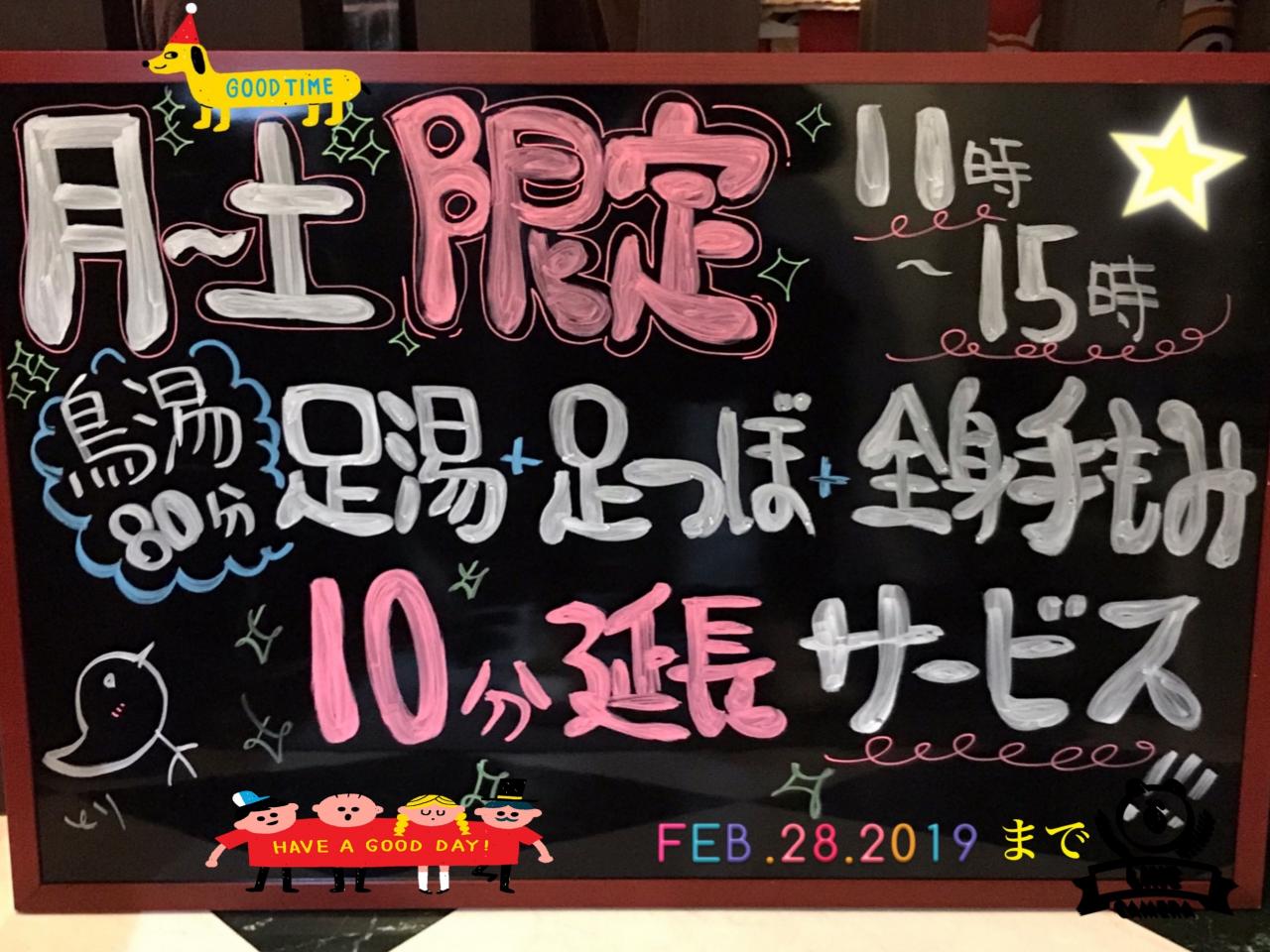 人気の鳥湯(足湯・手もみ・足つぼの80分セット)コースが
