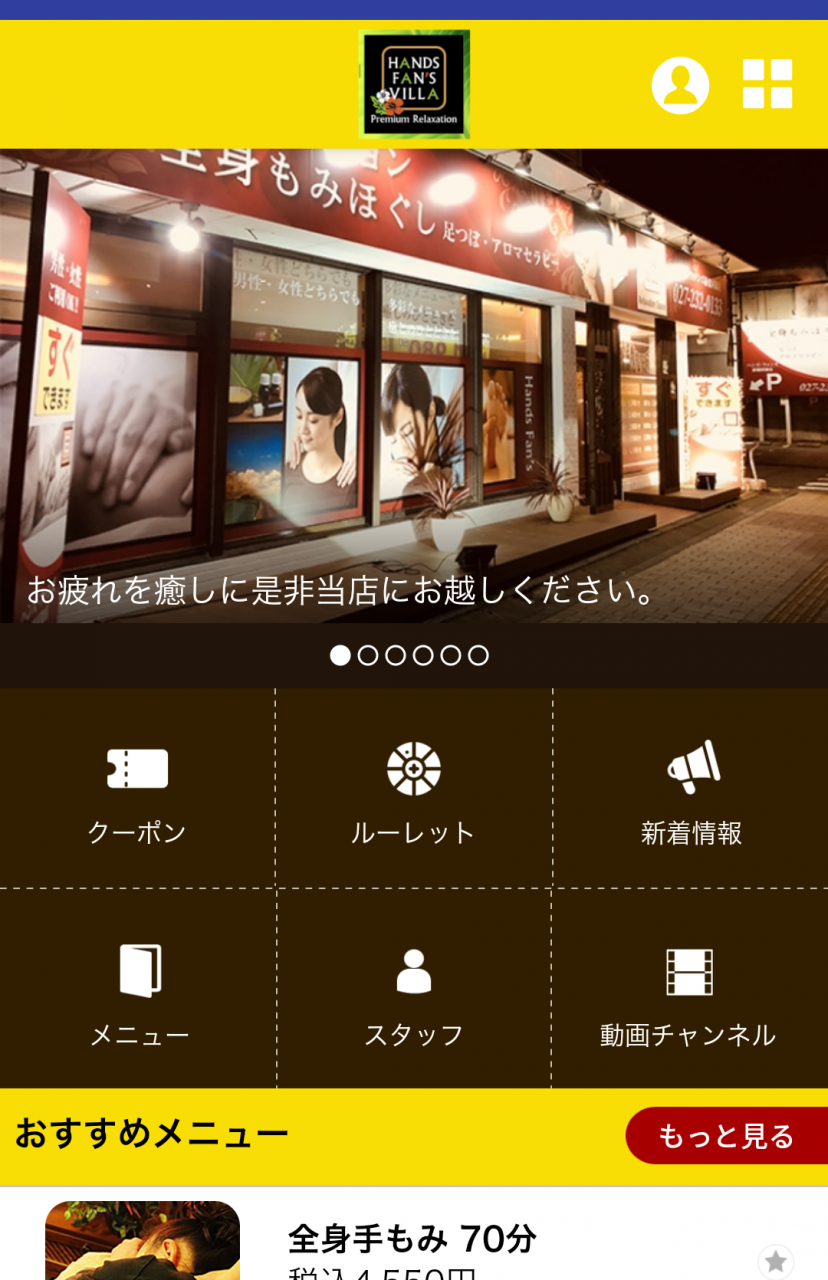 この選択で登録店舗(マイショップ)のメニューやスタッフ紹介が画面に出てきますよ。