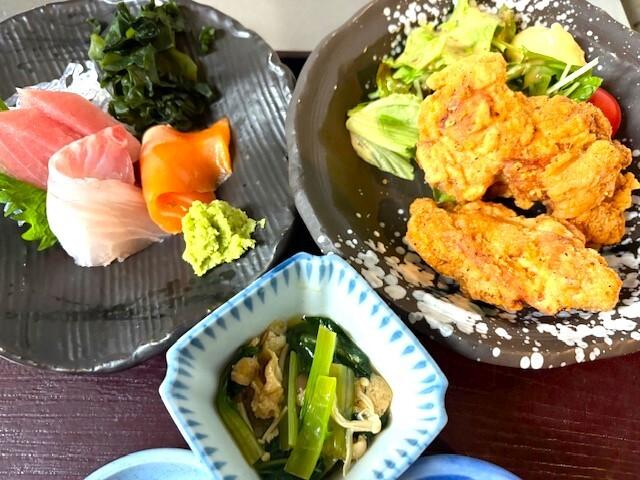 お刺身と鶏の唐揚げ