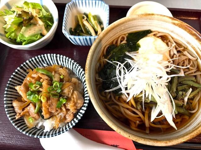 山菜トロロそばとミニ焼肉丼