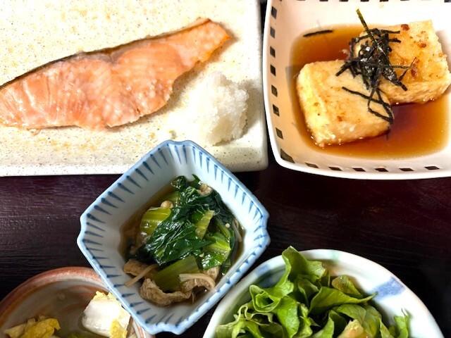 サーモンの塩麹焼きと揚げ出し豆腐