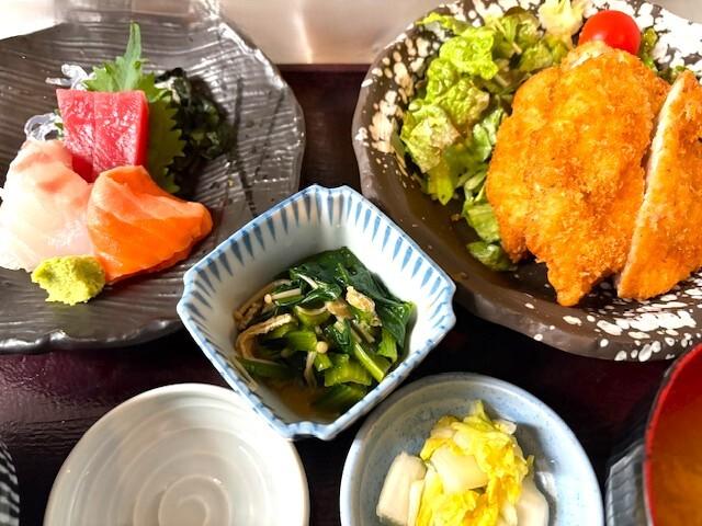 お刺身とチキンカツ