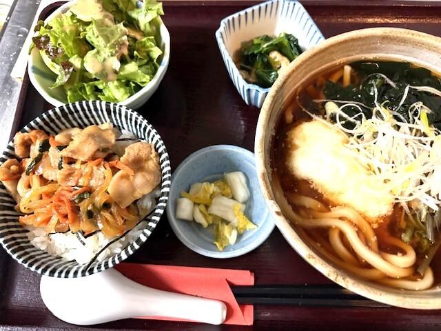 山菜トロロうどんとミニ焼き肉丼