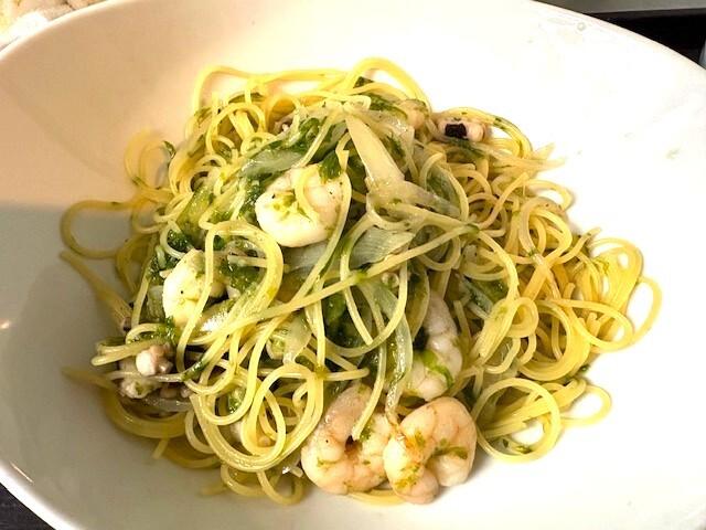 エビ・タコの生のり塩味パスタ