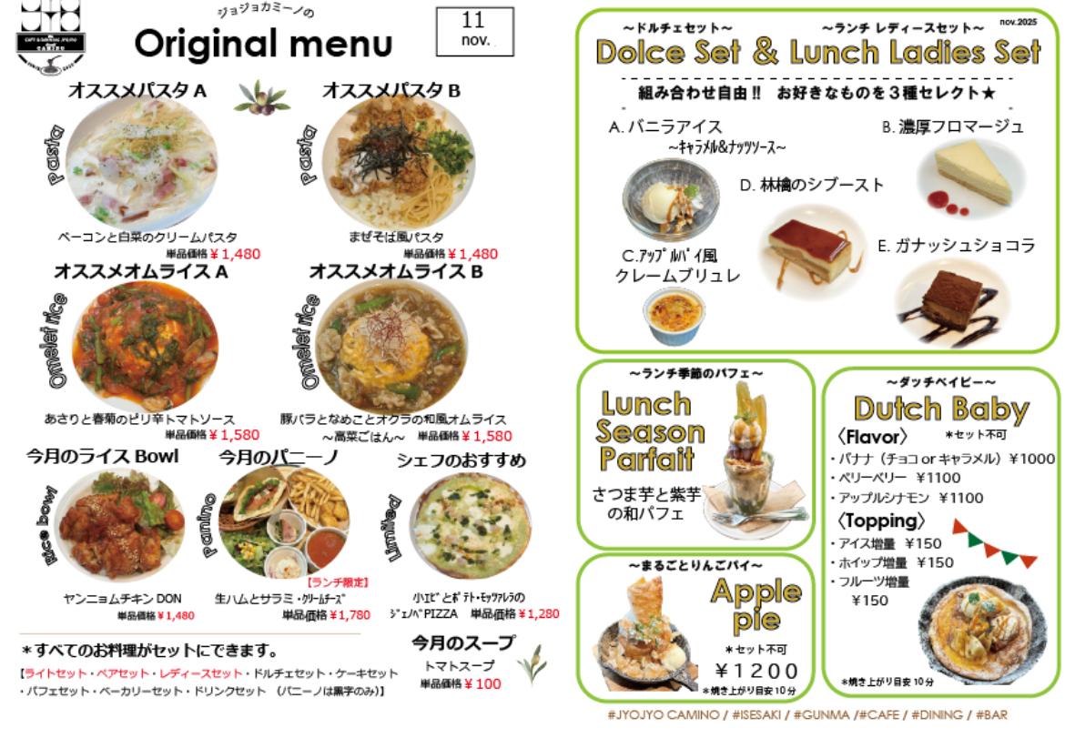 トップ > 群馬のグルメ > 伊勢崎・玉村のレストラン・ダイニングバー > 伊勢崎その他 > JYOJYO CAMINO