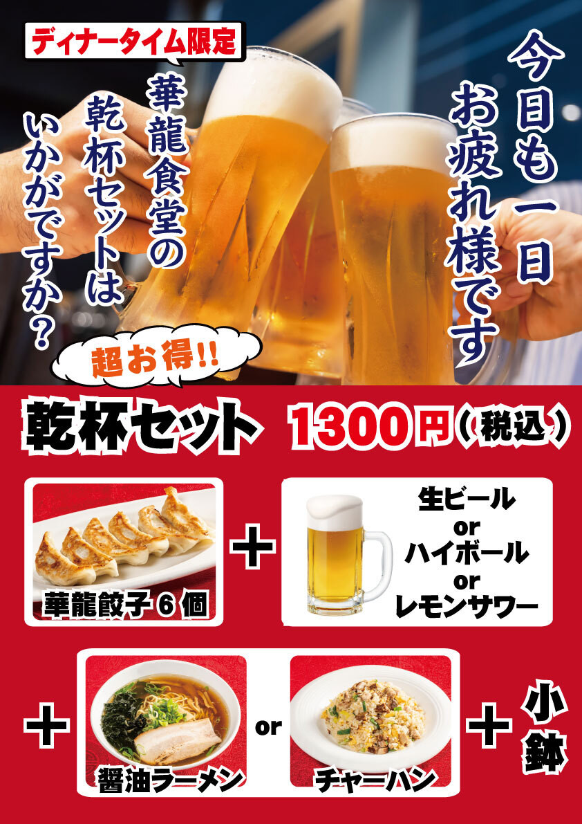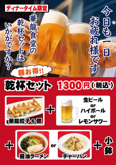 更に+200円で自慢の華龍餃子(6個)付き!更にラーメン大盛り無料!