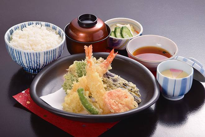 | 釜めし・天ぷら・茶わん蒸し・味噌汁・お新香 |