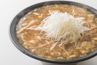 ラー油を一切使用しない本格酸辣湯麺。昆布醤油の甘みと胡椒の辛さが織りなす酸味と辛味の効いたとろみ麺。 四川の寒さを乗り切るためスープが冷めづらいように『とろみ』を強めた本場の味を再現した一品。 |