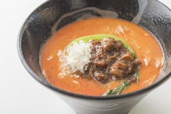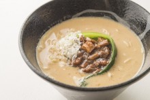 贅沢に丸鶏を使い旨味を引き出し、げんこつを加えてコクをプラスしたガラに煎った荒い胡麻をすり鉢で潰したペーストを合わせたスープを使用。 自家製ゴマペーストのためスープを口にすると舌触りにゴマの食感をお楽しみいただくこともできます。 味わいは、胡麻本来の甘味と風味、鶏の旨味がしみ出たすっきりとした口当たりが特徴です。 |