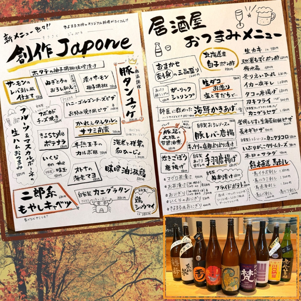 居酒屋メニューは、その時々の仕入れ・仕込みによって内容が変わります。