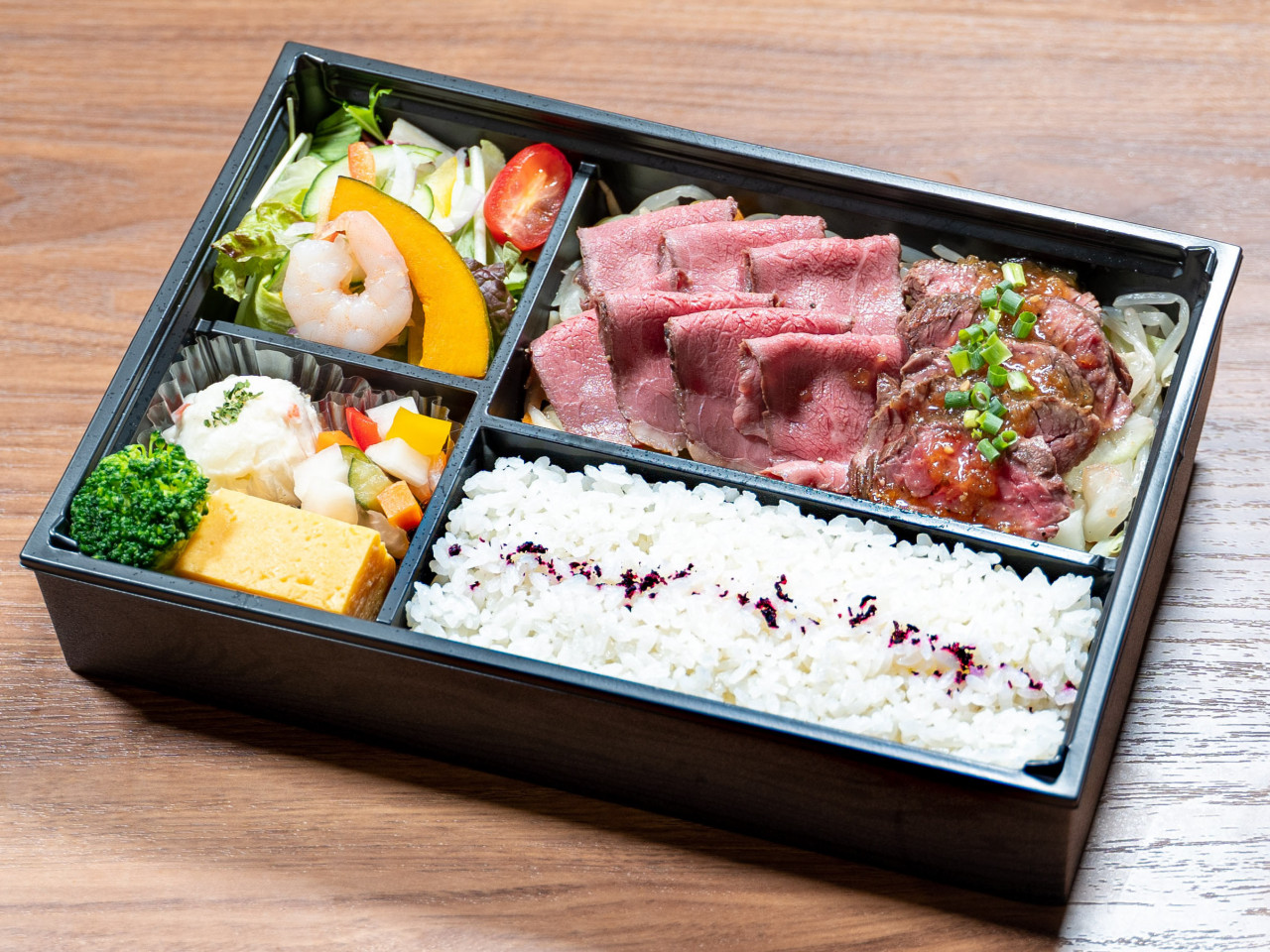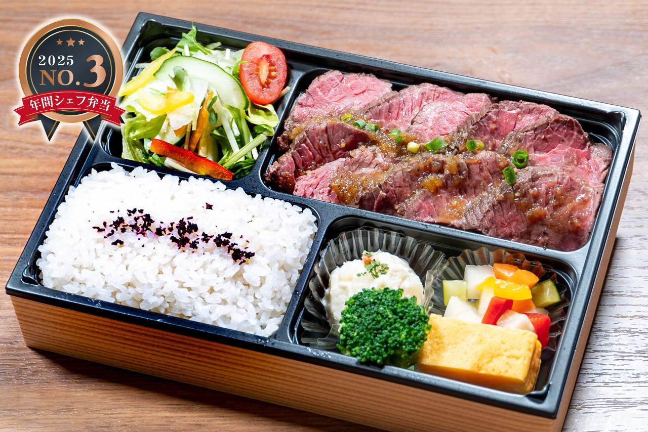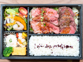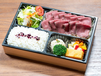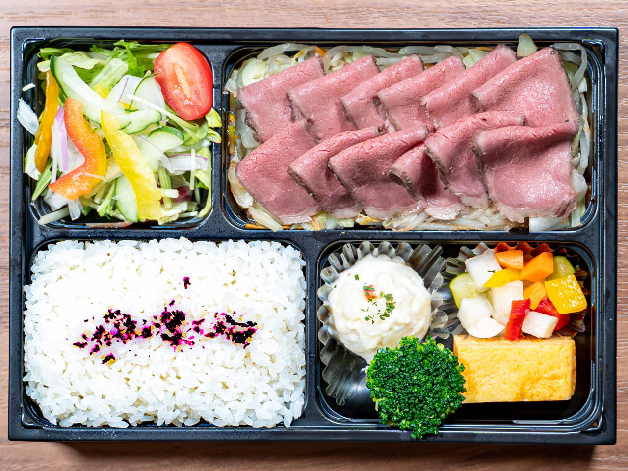 柔らかローストビーフのお弁当です。当店でも人気のお弁当で、お肉も贅沢にたっぷり入っています。