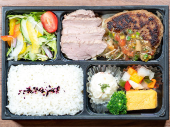 当店人気の2種類を贅沢盛り込んだお弁当です。ローストビーフとハラミは共に柔らかく、味わい深いです。