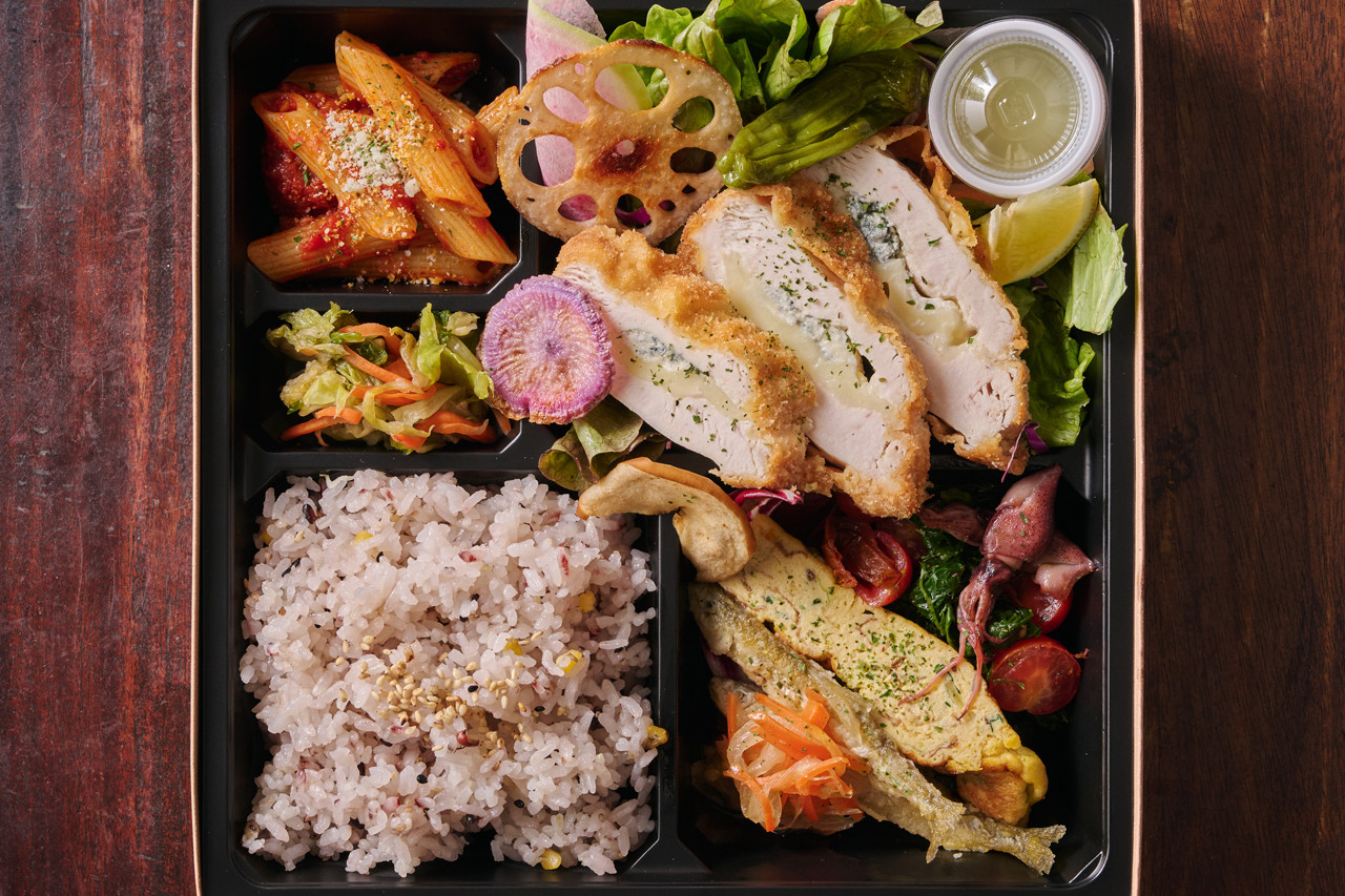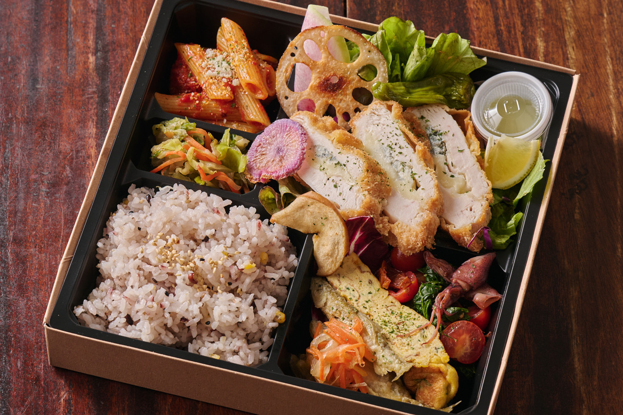 群馬が誇る上州地鶏のもも肉を、旨味たっぷりのトマトソースでじっくり煮込んだカチャトラ弁当。ジューシーで弾力ある食感と濃厚な味わいが楽しめ、彩り豊かな副菜とともに満足感のある一折です。