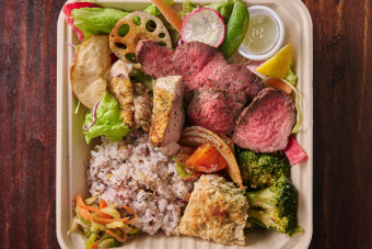 香ばしく焼き上げた鶏もも肉の炭火焼きと、旨味あふれる上州牛ステーキを一度に味わえる贅沢な合盛り弁当。肉の美味しさを存分に楽しめる満足感のある一折。