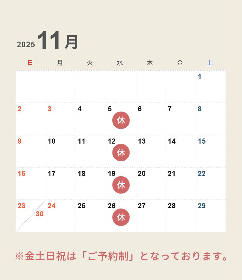 ※金土日祝の営業は「ご予約制(※2日前まで)」となっております。