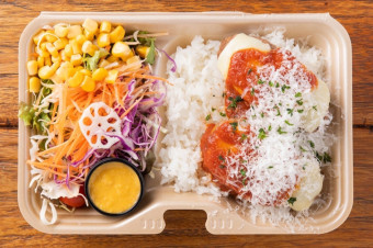 | ■ | 自家製ステーキソース 王道ハンバーグ弁当 | 900円(税込) | ■ | 二種のチーズトマトハンバーグ弁当 | 1000円(税込) | |