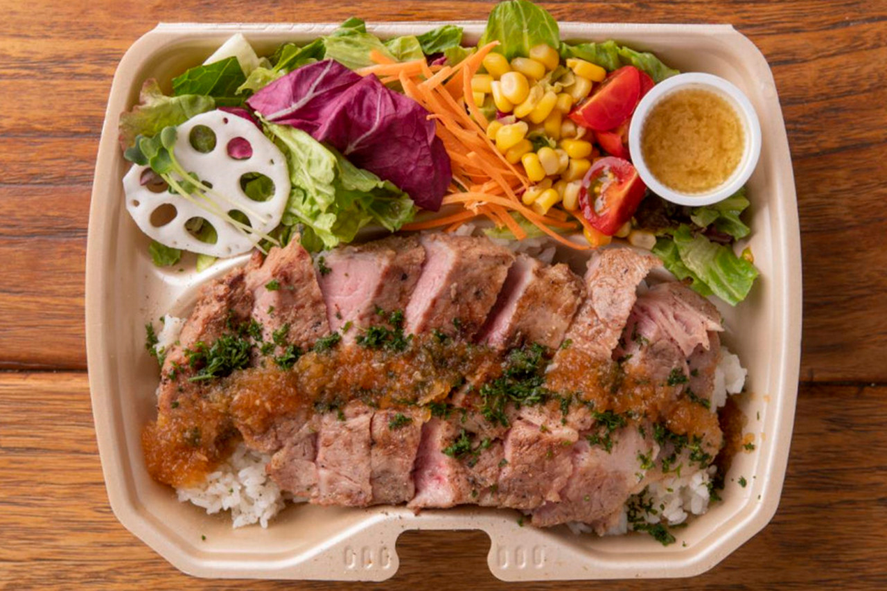 | ■ | 炭火焼ローストポーク弁当(ステーキソース) | 900円(税込) | ■ | 炭火焼 ローストポーク弁当(ジンジャーソース) | 900円(税込) | |