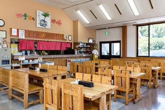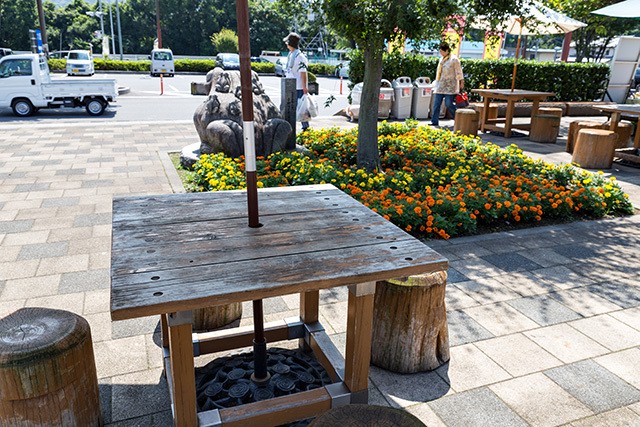 道の駅こもちの周辺案内   休憩テーブル・ベンチは各所に設置   土日のみ足湯が利用できる