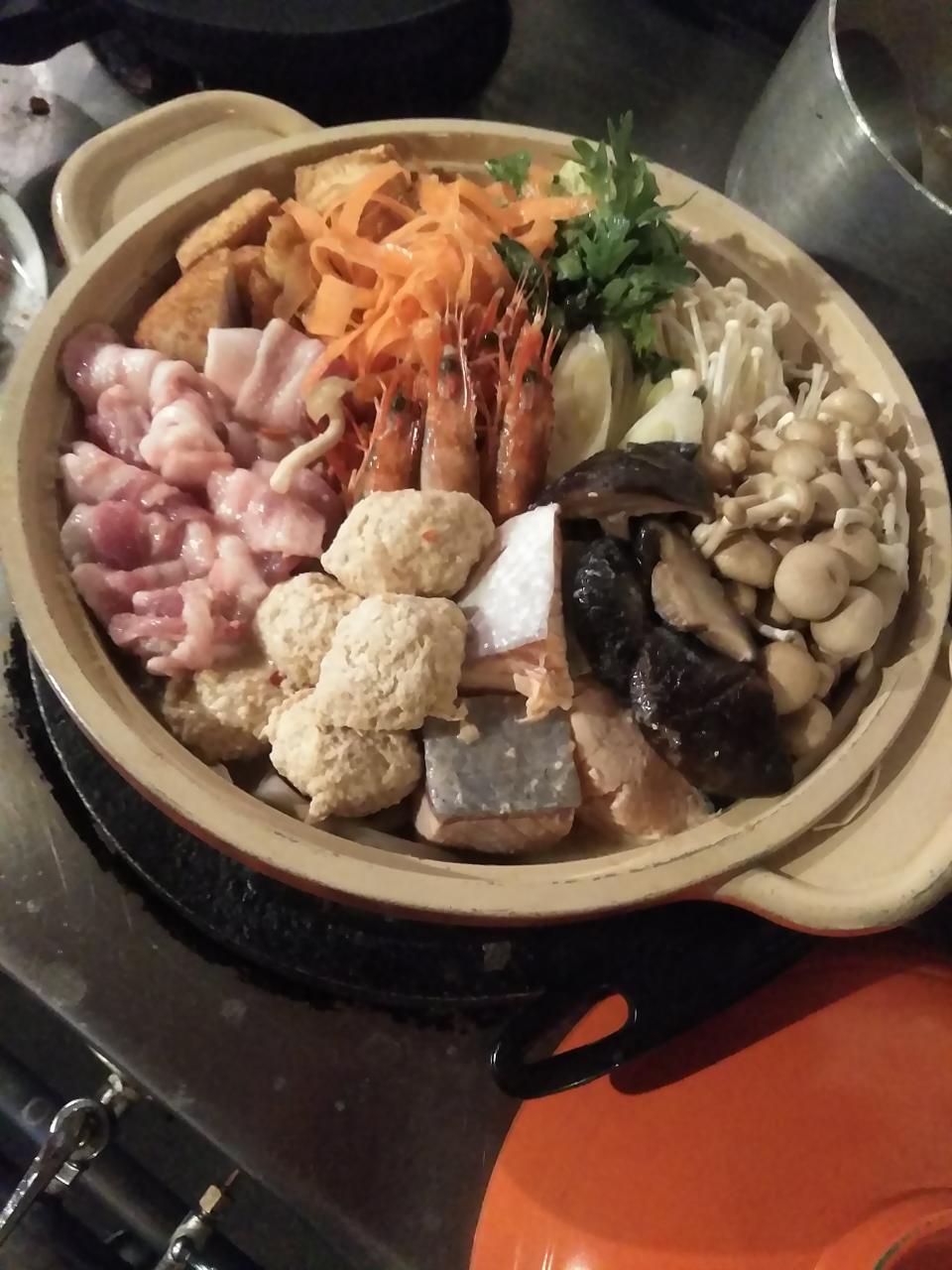 大好評いただいている、NavajoWhite冬の定番メニュー"らあめん鍋コース"¥3980(税込み)✱2時間の飲み放題とアンティパスト3品盛り、料金3品、らあめん鍋(国産豚バラ、自家製鶏団子、牡蠣、北欧サーモン、有頭海老、麺(替玉できます)、お野菜…etc)がついて超お得❢